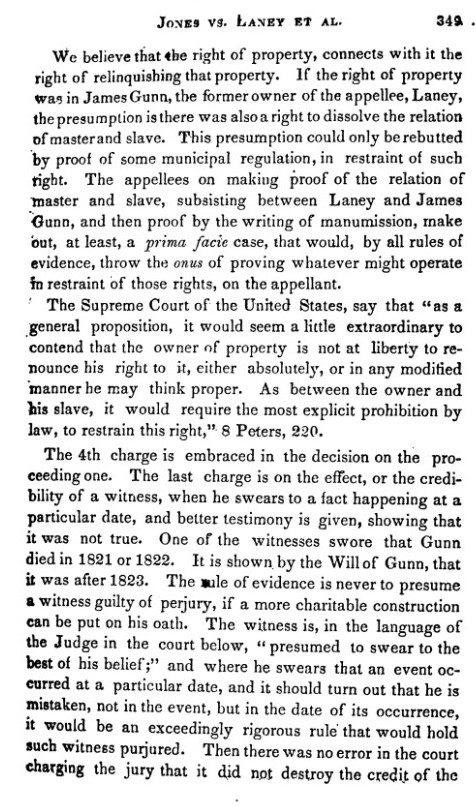 The Supreme Court of the United States, say that “as a general proposition, it would seem a little extraordinary to contend that the owner of property is not at liberty to renounce his right to it, either absolutely, or in any modified manner he may think proper. As between the owner and his slave, it would require the most explicit prohibition by law to restrain this right,” 8 Peters, 220.